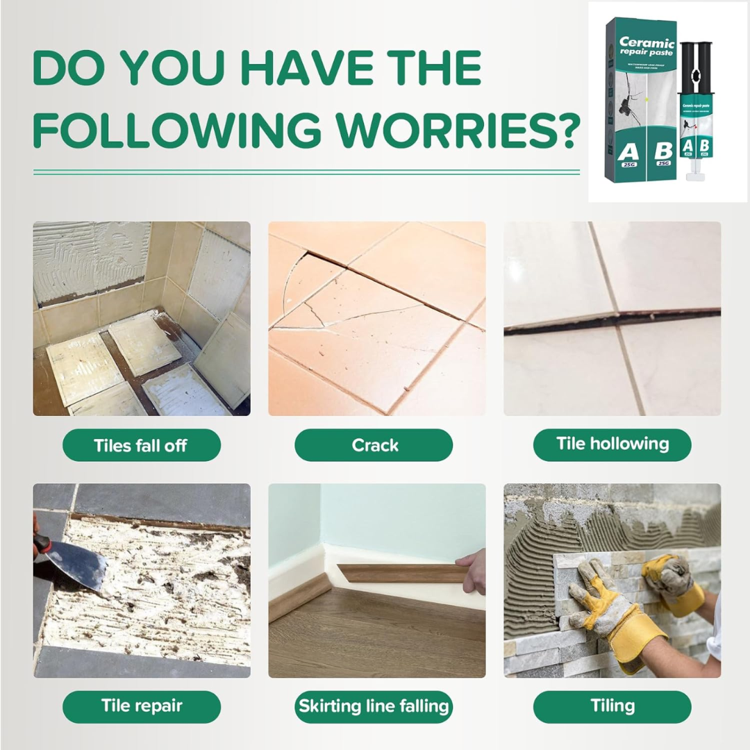 Damaged tiles can disrupt the look of your space and often lead to expensive repairs or replacements. Finding the right tile or paying for professional services can feel overwhelming and costly. With FixCeram™, you can repair your tiles easily and affordably without the need for costly replacements. This simple and effective repair paste brings back the original beauty of your tiles, whether in your bathroom, kitchen, or outdoor spaces, in just a few easy steps!