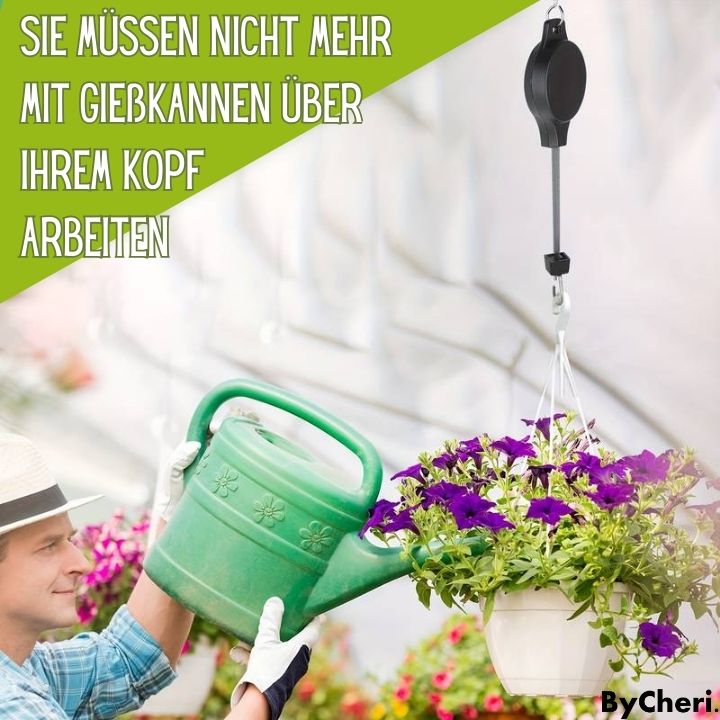 Experience convenient access to your high or elevated plants! The retractable pulley system of PlantPro makes it easy for you to water hanging plants regularly and thoroughly.