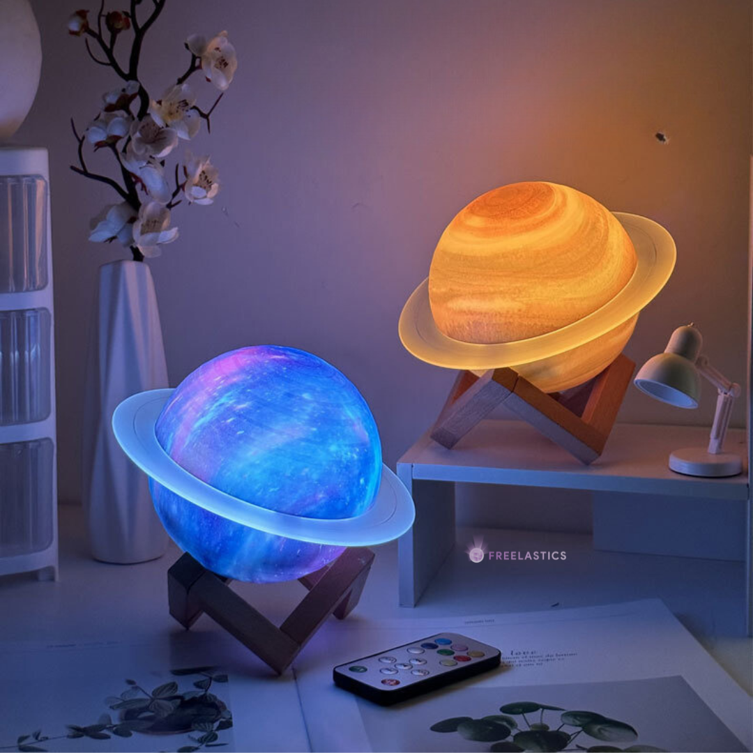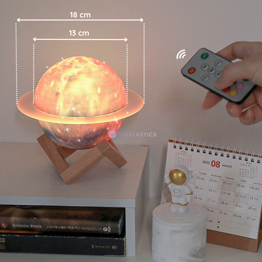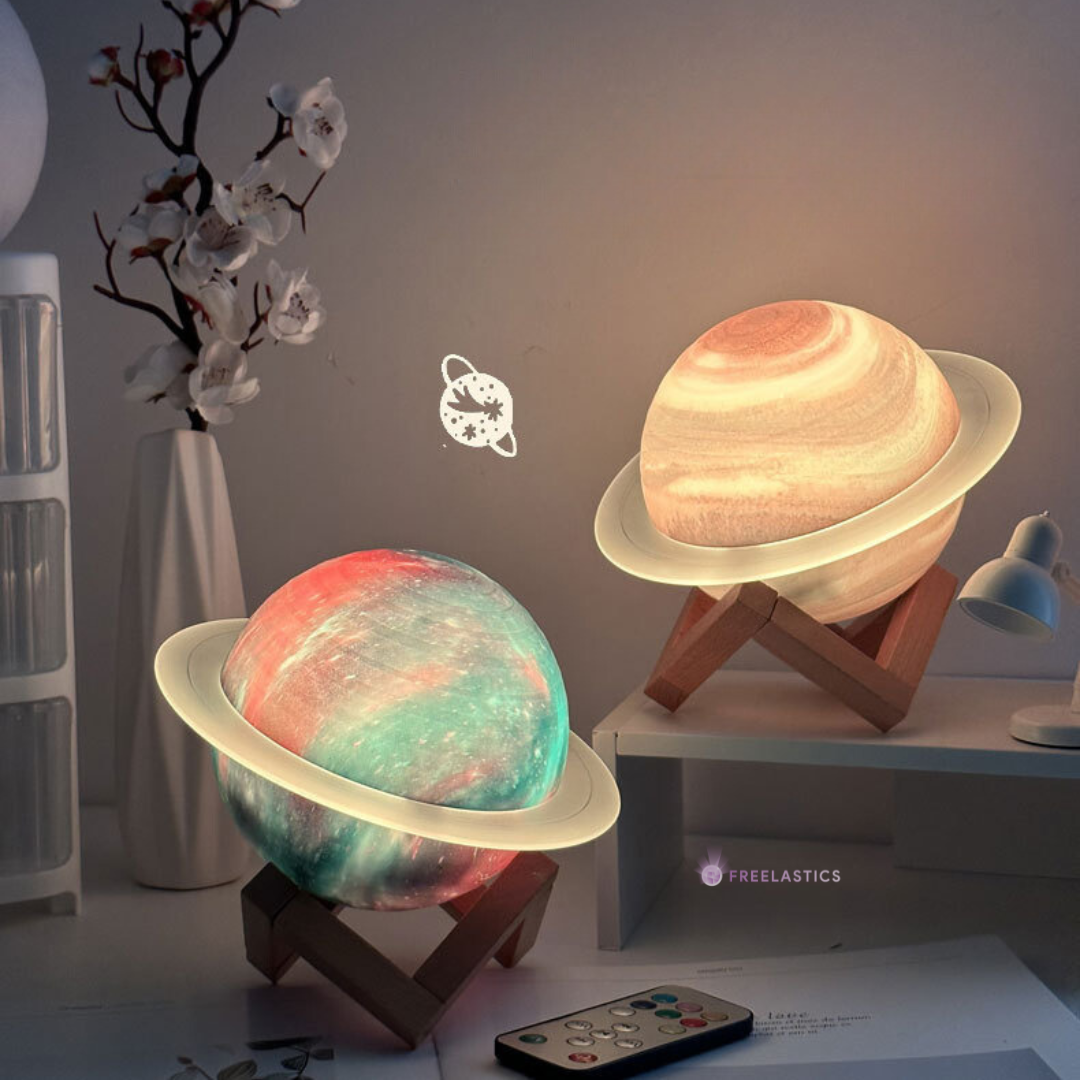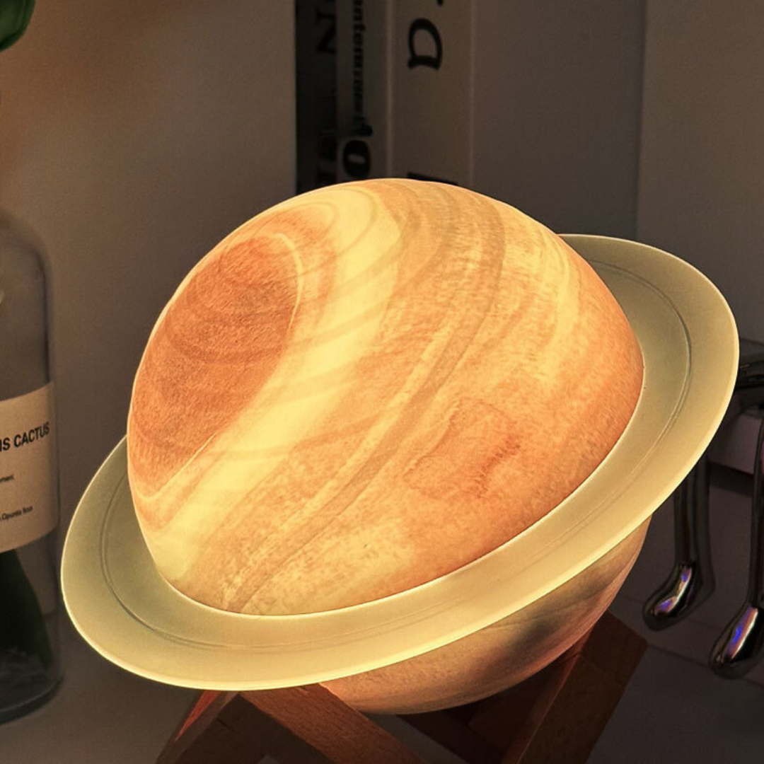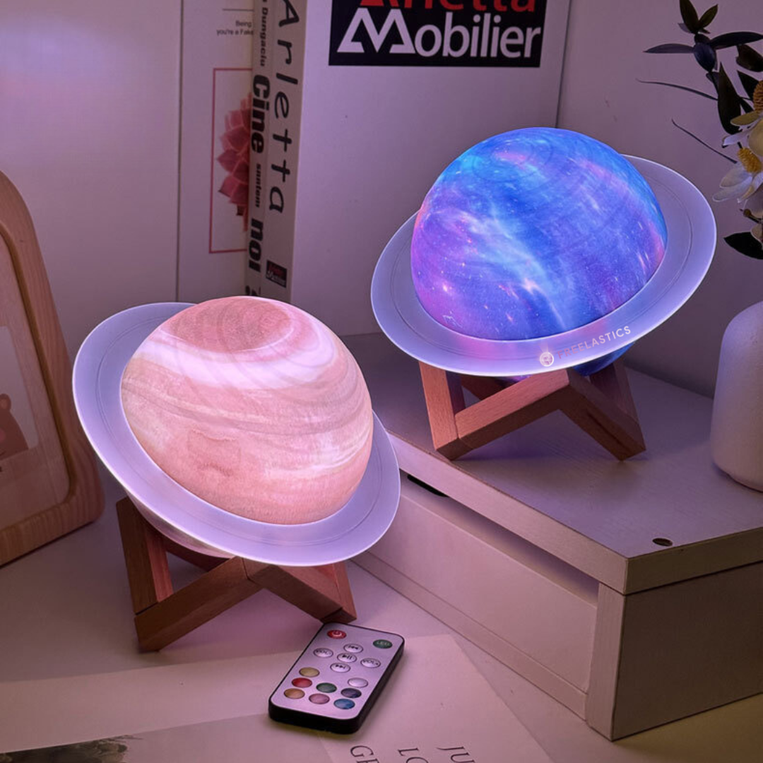 Celestial Design: Inspired by the majestic Saturn and its impressive appearance, this lamp embodies the symbiosis of planet and galaxy.