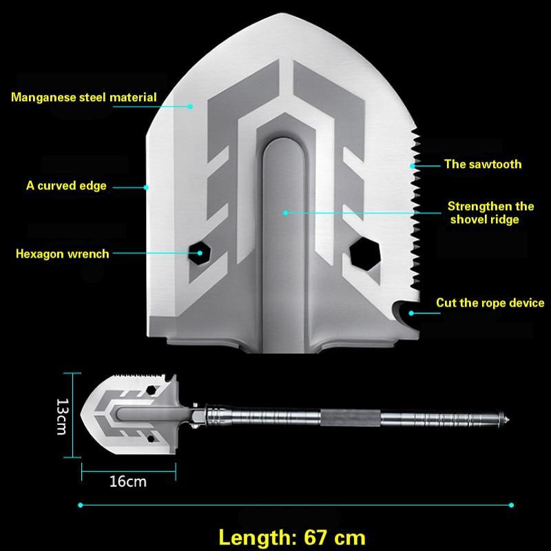 The foldable and lightweight design makes the shovel convenient to carry and store, so you can take it anywhere, from the car to the emergency bag. Perfect for any outdoor adventure. It combines all the necessary tools so you are prepared for anything.