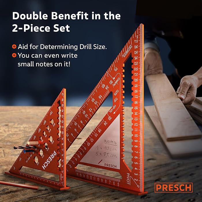 ✔️ Versatility: The triangular shape allows for measuring and marking straight lines and angles, making it ideal for tasks such as marking stair stringers, roof pitches, and various angles required for intricate carpentry work.