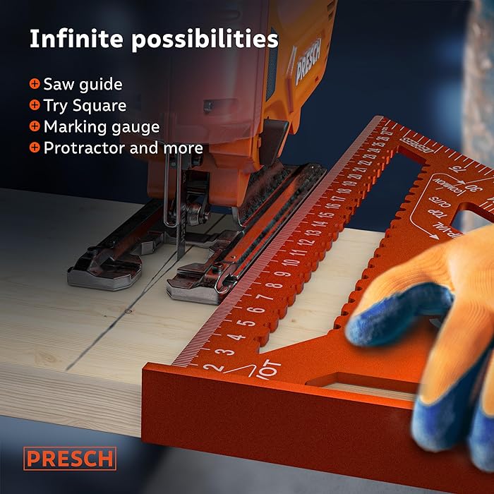 ✔️ Easy Handling: With its clear markings and easy-to-read design, this tool is user-friendly, allowing carpenters of all skill levels to measure, mark, and cut efficiently and precisely.