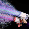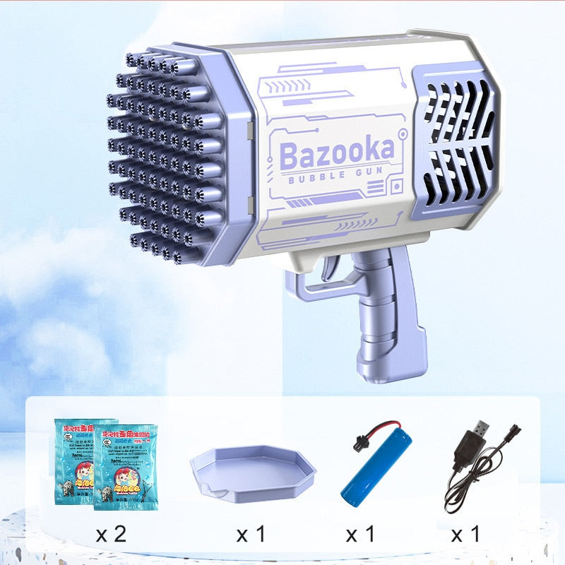 This next-generation bubble gun can blow thousands of colorful bubbles per second. With 69 bubble holes for maximum fun, light it up at night and enjoy the show!