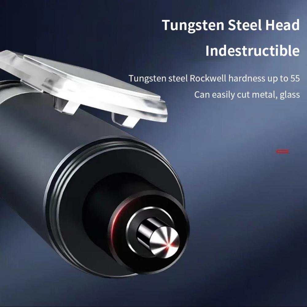 The robust tungsten steel blade with a hardness of 55 has high impact force and can shatter window glass with one strike. And to cut through your seatbelt, simply remove the protective cover, place the u-shaped opening of the knife on the seatbelt, and push the Breaker™ forward quickly. This way, you can free yourself from the most stubborn seatbelt and quickly exit your vehicle.