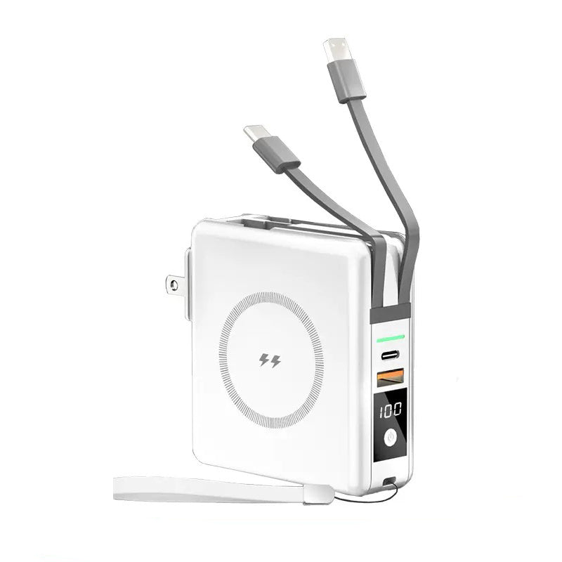 Versatile Charging - Effortlessly charge your devices with the wireless MagSafe charger for the iPhone 12/13 series, the USB-C port for laptops and tablets, and the built-in audio and USB-C cables. Stay connected and powered up wherever you go.