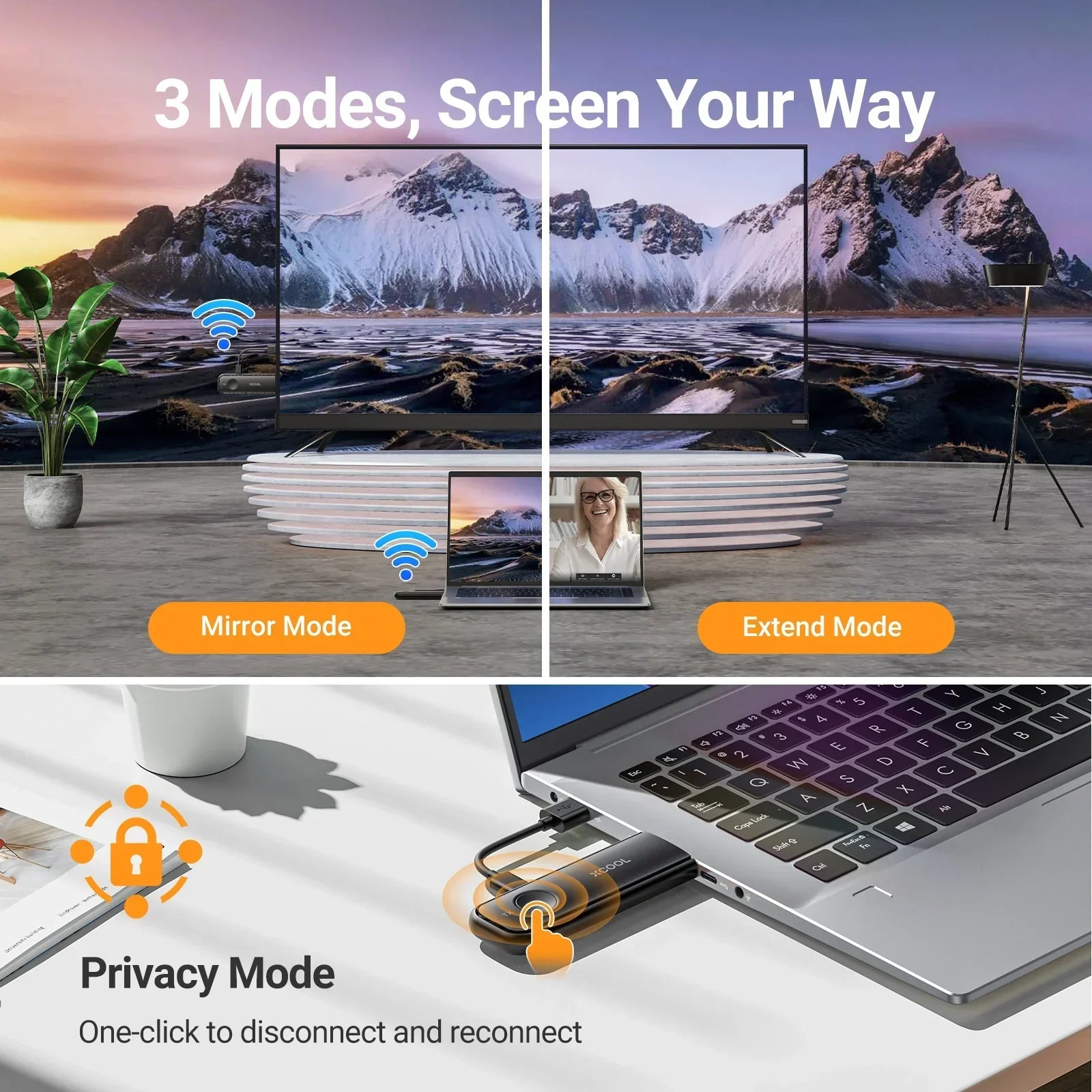 ✔️ Wireless convenience: Transfer video and audio signals from your device to a TV or monitor without the hassle of cables for a clutter-free setup.