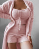 The soft fleece set is lightweight and breathable, making it the perfect lounge set for transitional seasons like early autumn and winter.