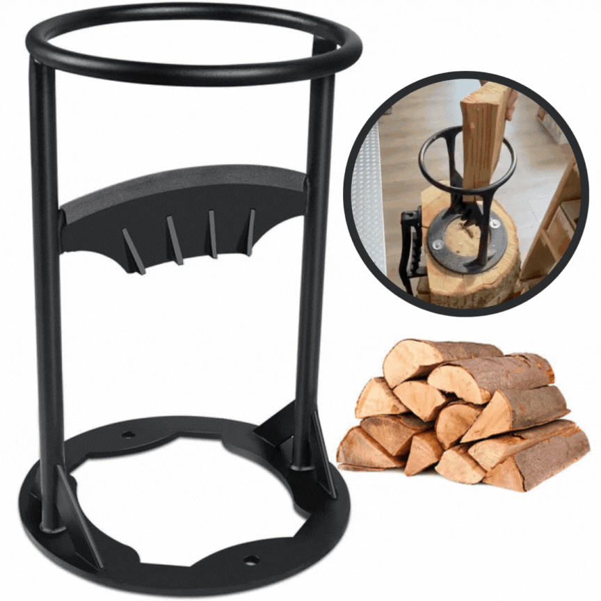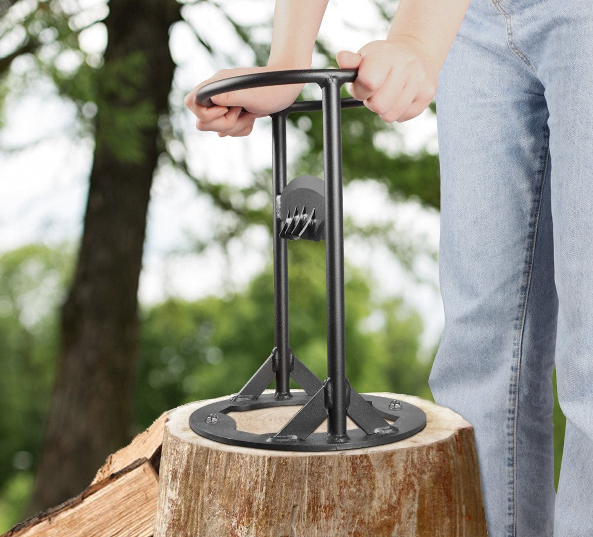 The Kindling Cracker Halo features a separator ring in the center, ensuring that the wood does not get stuck in the blade, making it easy to use. Simply place a piece of firewood in the splitter and strike the wood with a hammer or sledgehammer into the fixed splitting head.