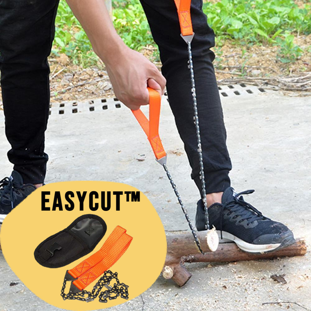 EasyCut™ is a portable chainsaw with razor-sharp teeth, allowing you to safely cut large pieces of wood by hand without using a hazardous ax or other sharp tools. With EasyCut™, you can now easily cut wood without compromising your safety!