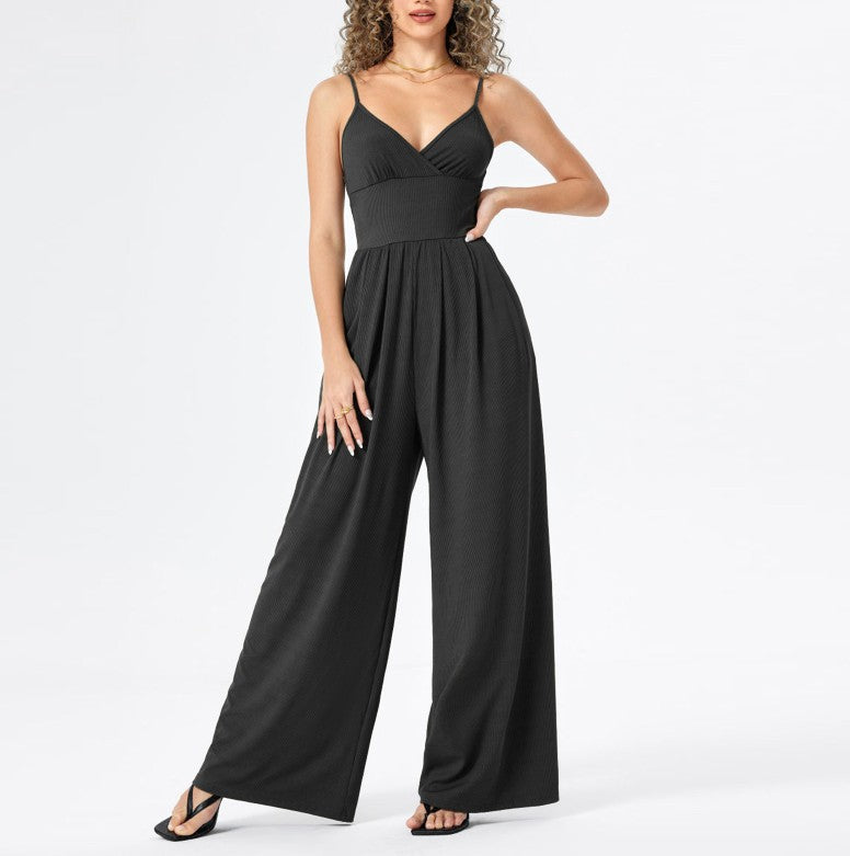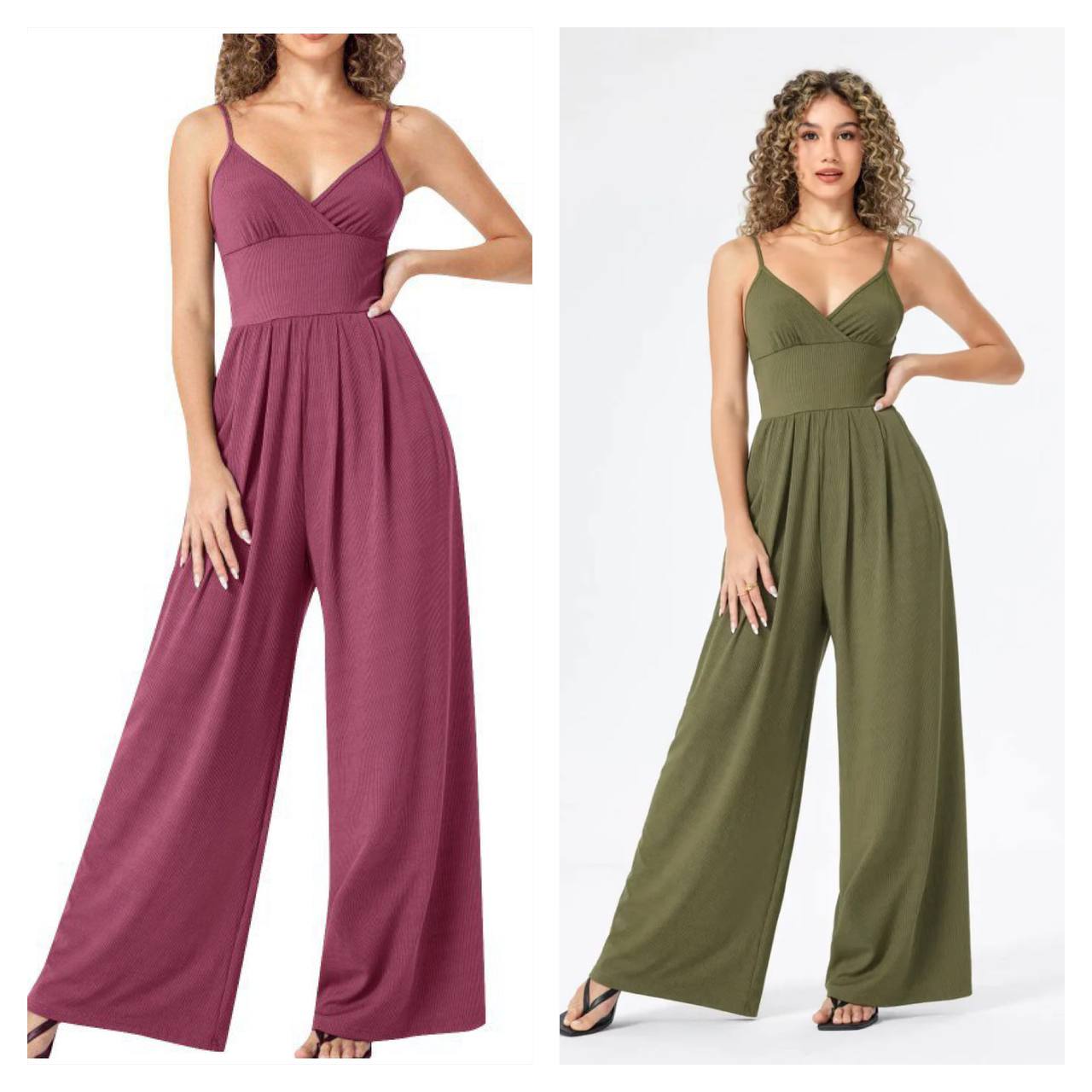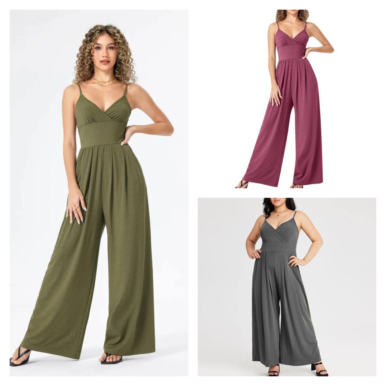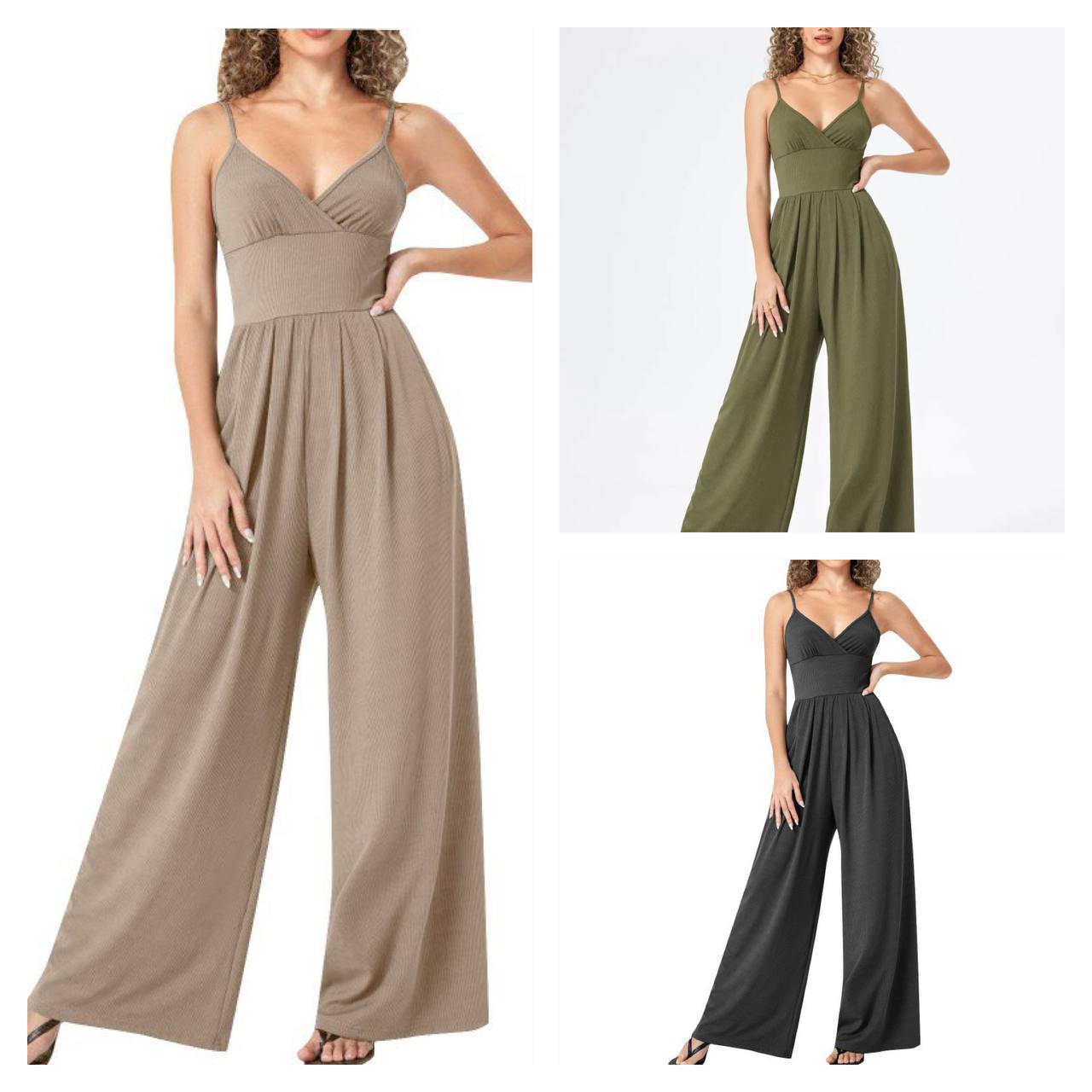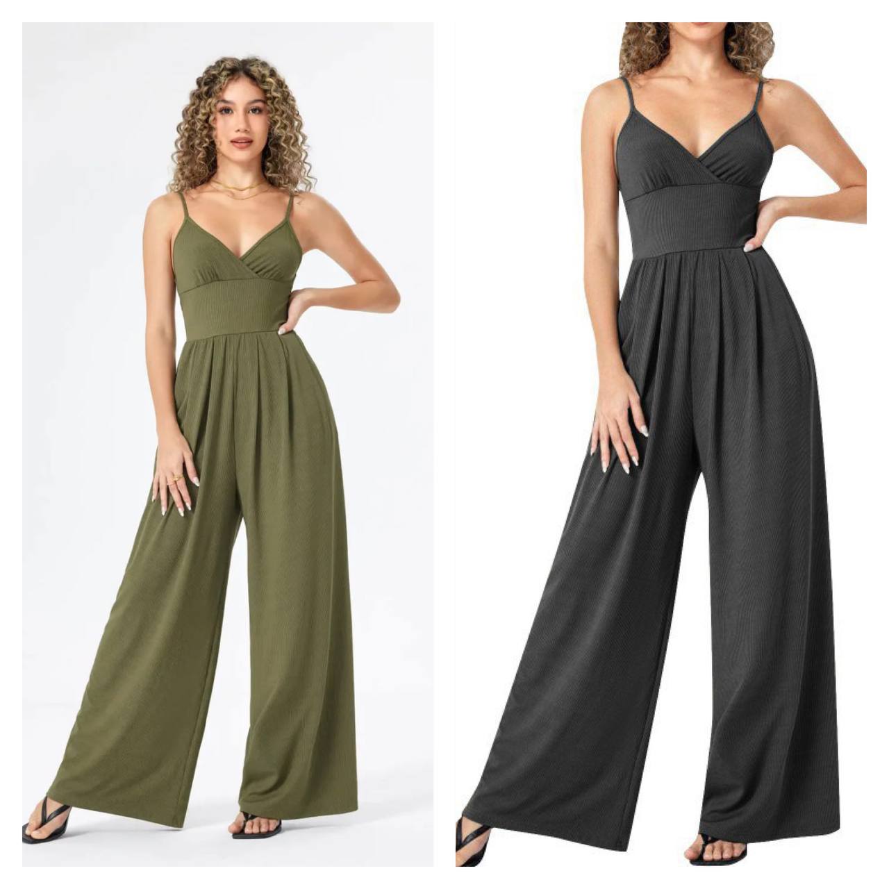 THAT'S WHY YOU NEED OUR V-NECK JUMPSUIT WITH WIDE LEGS AND POCKETS