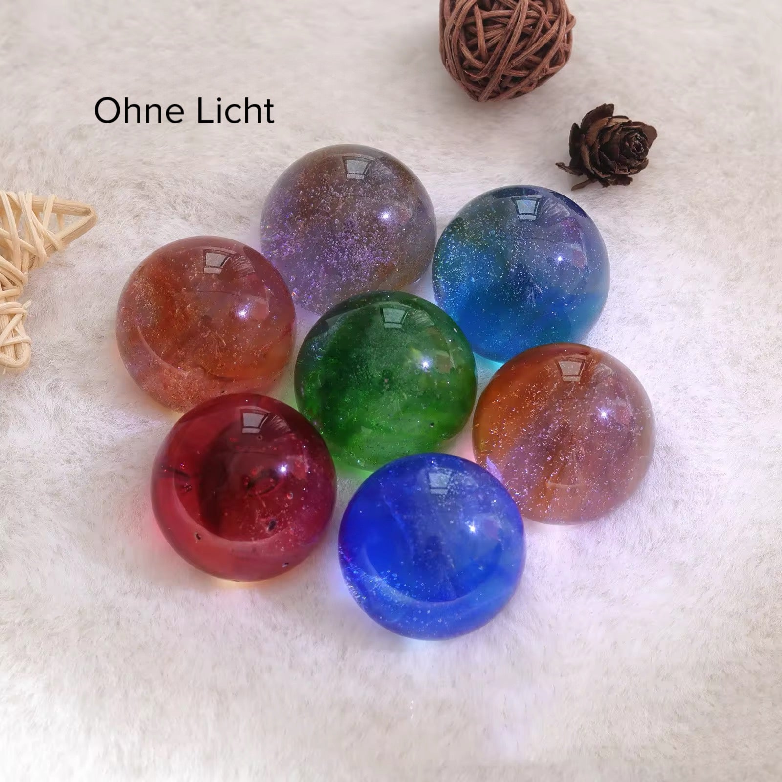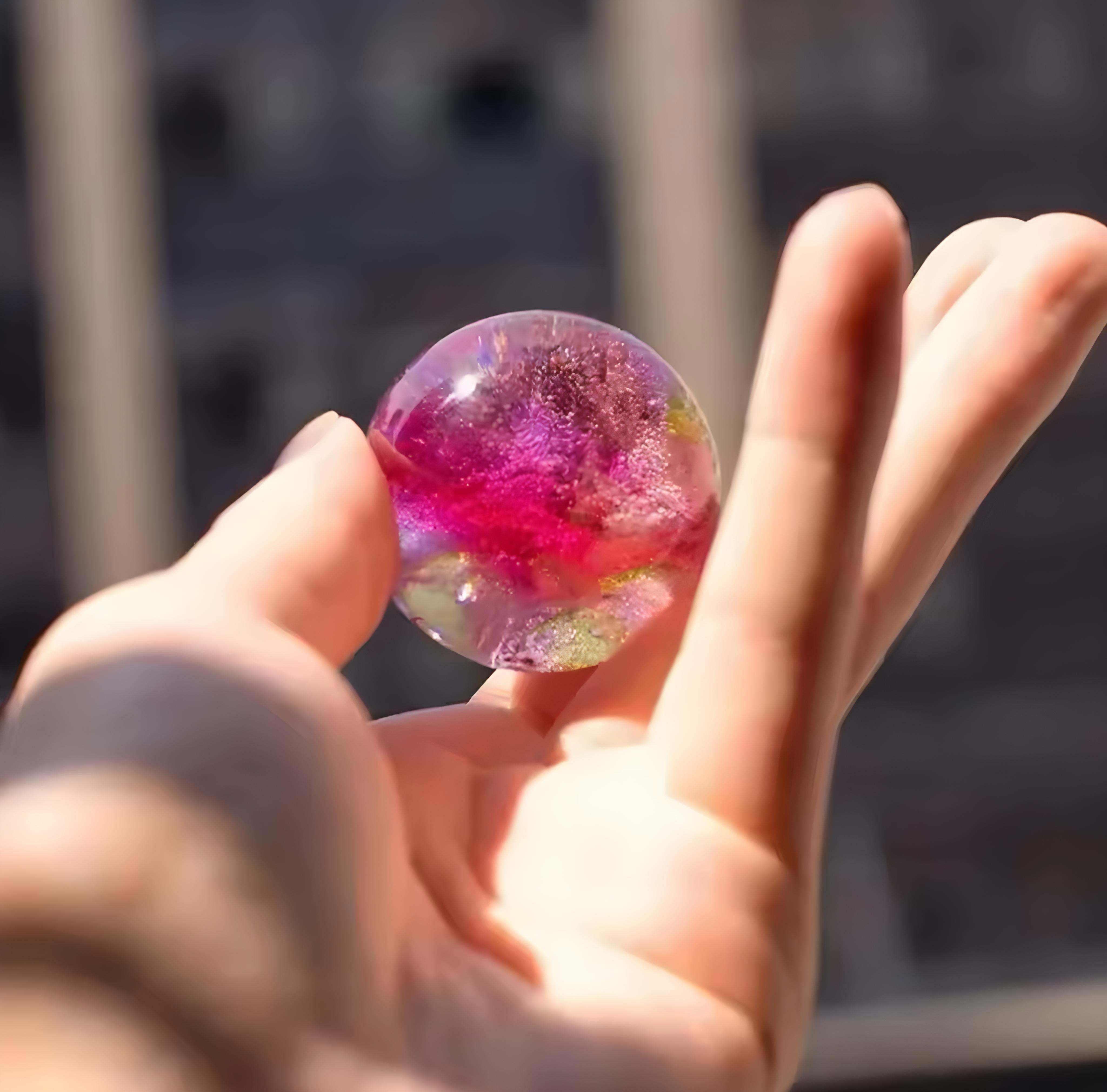 Our orbs are made of genuine crystal, not ordinary glass. While they are more delicate, they offer unparalleled clarity, vibrant colors, and an impressively elegant appearance.