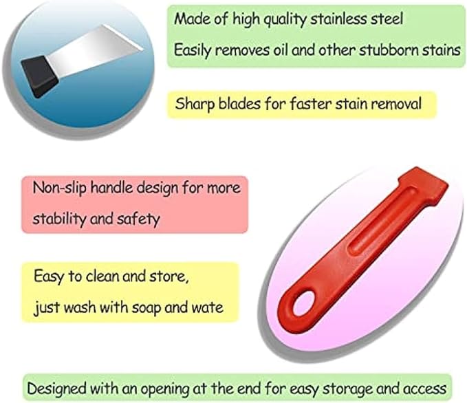 ✔️ Ergonomic Design for Comfort: Say goodbye to hand strain and discomfort during extended cleaning sessions! Our scrapers are perfectly sized for comfortable handling, allowing you to clean with precision and efficiency.