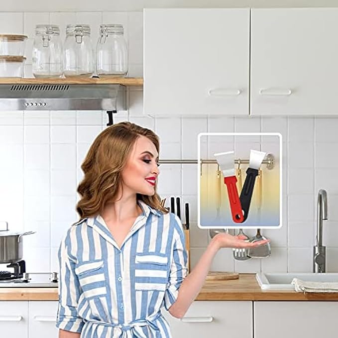 ✔️ Stylish Two-Color Design: Add a touch of modern elegance to your cleaning routine with our sleek and stylish scraper set. The vibrant red and black colors not only look great but also make it easy to distinguish between tools for efficient organization.