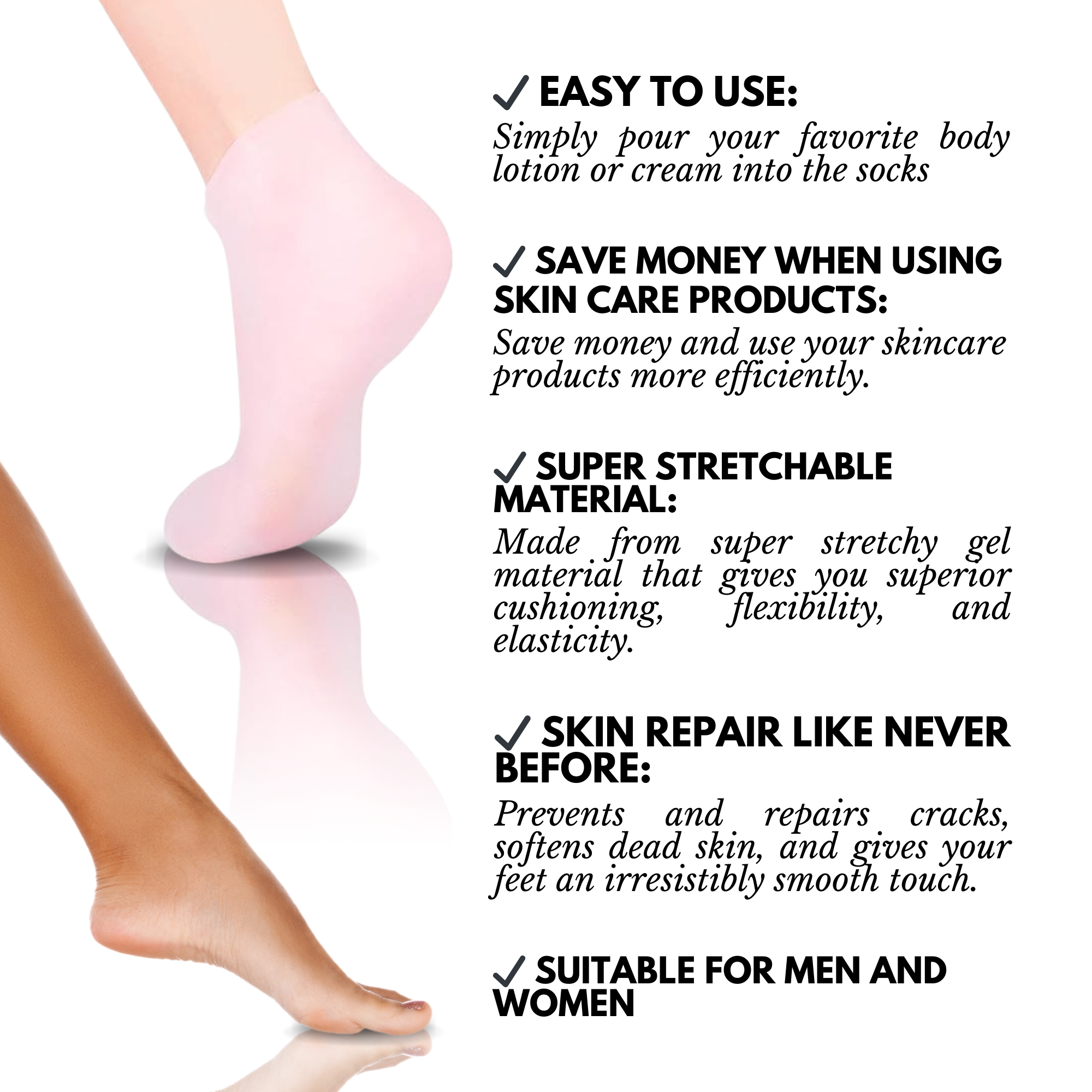 ✔ EASY TO USE: Our silicone socks allow you to simply pour your favorite body lotion or cream into the socks and then slip them on. This ensures that the moisture is locked in so that your skin can absorb it.