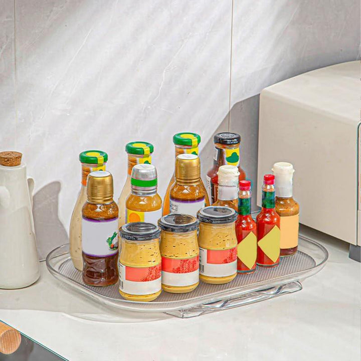 No more reaching behind items or struggling to find what you need—just a swift turn, and your fridge essentials are right there. Embrace the efficiency and modern flair this rotating rack brings to your refrigerator.