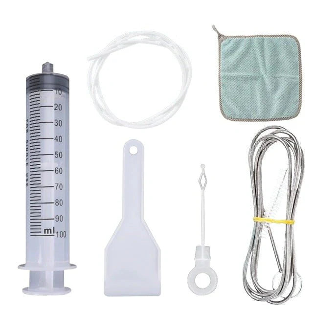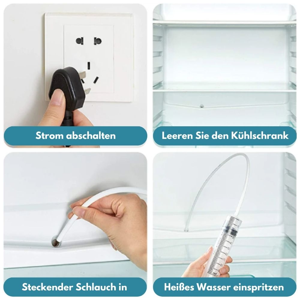 Is your refrigerator's water dispenser suddenly not working, and you're fed up with unpleasant odors in your fridge? Are you afraid to call a repairman or technician due to high costs? With this refrigerator cleaning kit, you save on costs and hassle! It allows you to spray hot water directly onto the pipe causing the blockage. Forget other tricks like blow-drying and leaving the door open for hours to defrost because that won't work!