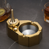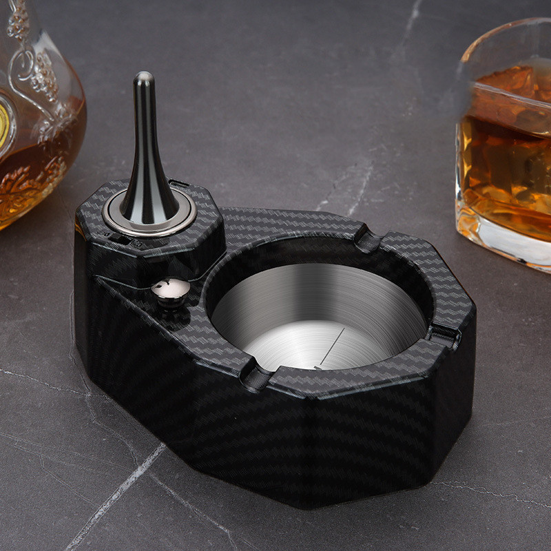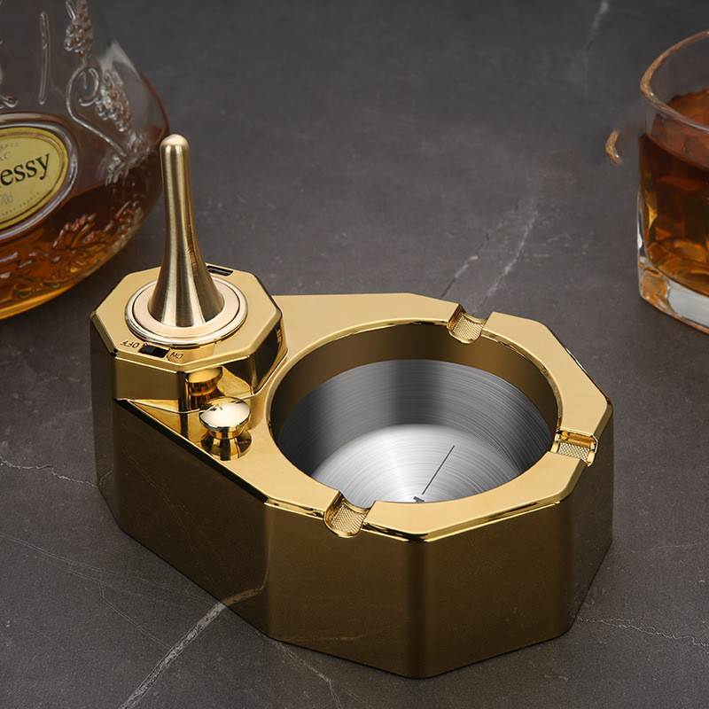 - Light your smoking material: Place your smokes on one of the concave holders on the ashtray's edges. Use the built-in electric and kerosene hybrid lighter to light your smoking material.