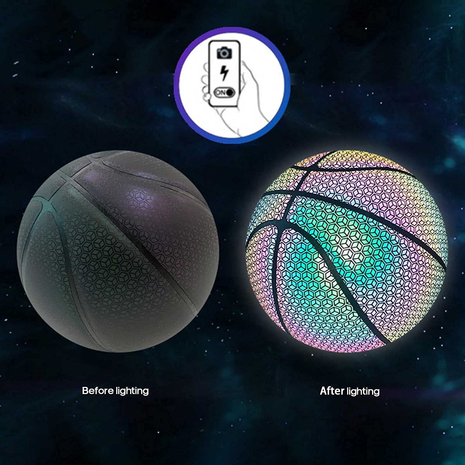 The flash photos and videos taken with our reflective basketball are the most eye-catching content you can share with friends, family, or followers on Facebook, Instagram, TikTok, Snapchat, or YouTube.