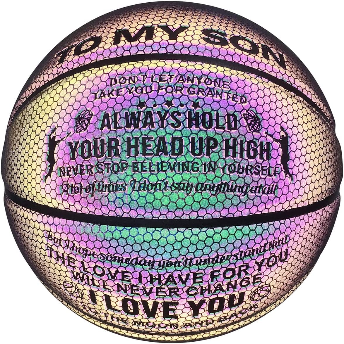 The reflective, glow-in-the-dark Funkemons™ basketball features holographic technology that allows basketball enthusiasts to play indoors or outdoors even in the dark. Just hit it with a light source and watch the beautiful colors come to life! I wish we had something like this when we were kids because it's just freaking awesome!