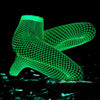 They have a unique design with fishnet patterns that emit light in the dark, making them ideal for events like raves, festivals, parties, or any occasion where you want to be noticed.