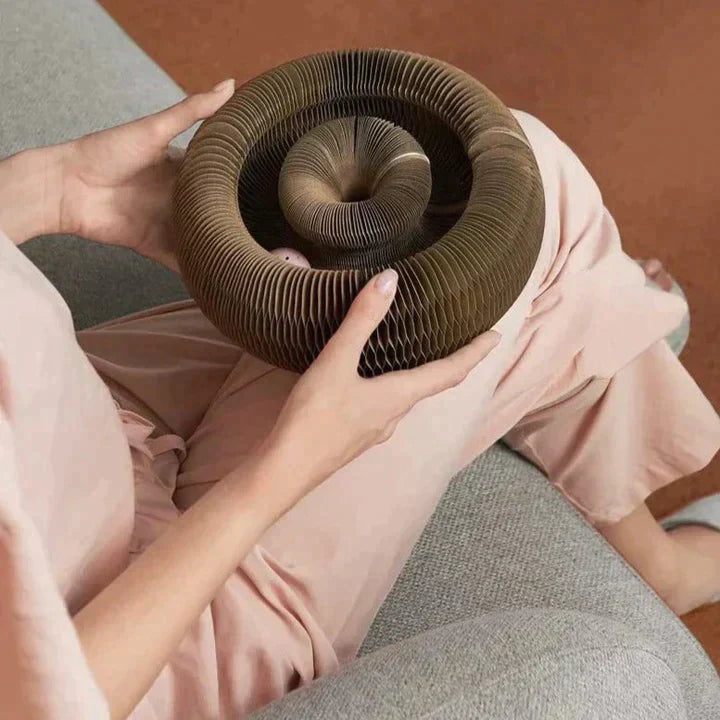 A revolutionary cat toy made from high-quality corrugated cardboard. It is not just a toy but a holistic solution that satisfies your cat's scratching instinct, protects your furniture, and keeps them active and healthy.