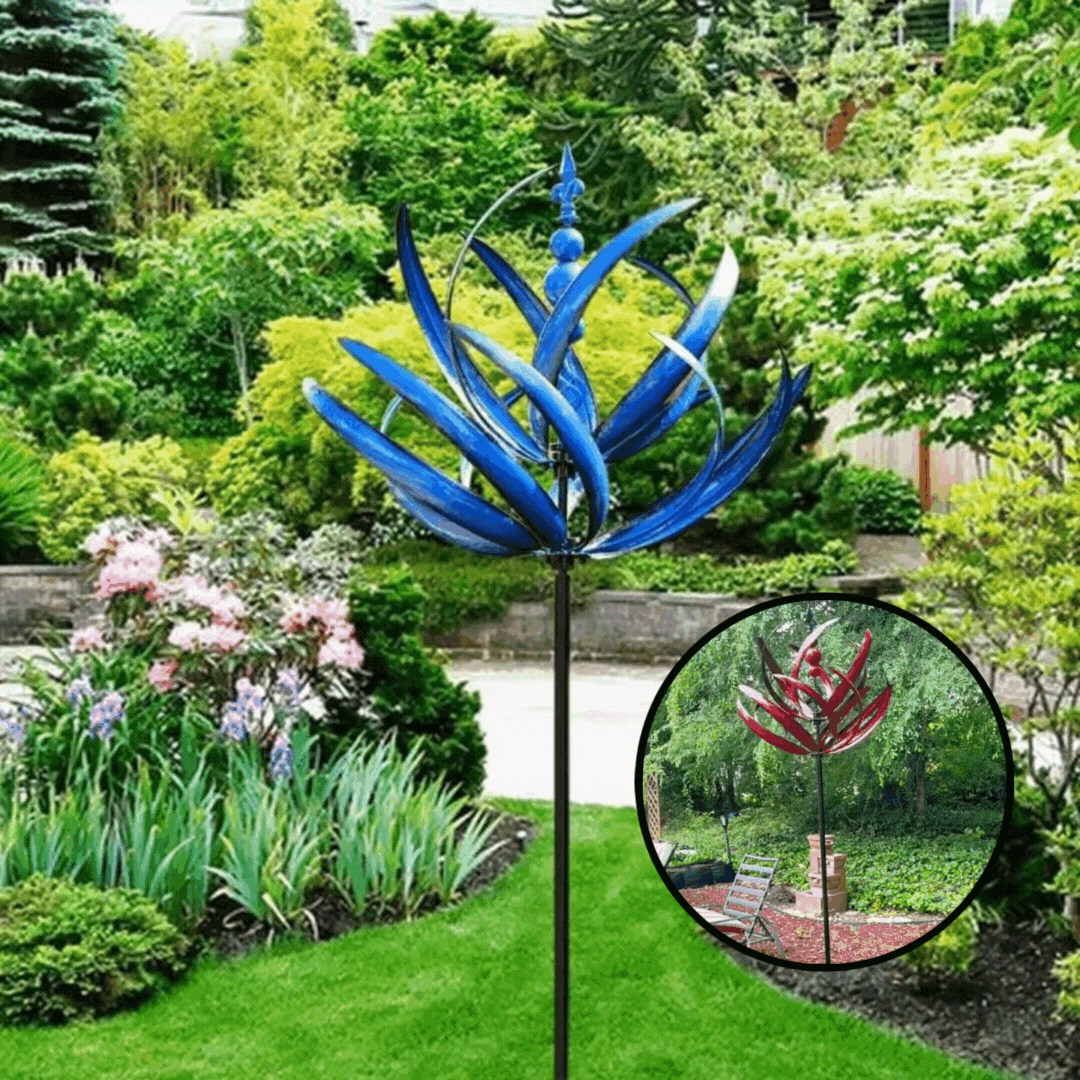 ✔️ Elegant Blue Finish: The rotating Harlow wind spinner adds a touch of blue to your outdoor spaces. Its blue finish gleams in the sun, and the Lotus-inspired design ensures a graceful and smooth rotation, providing 360-degree visual delight.