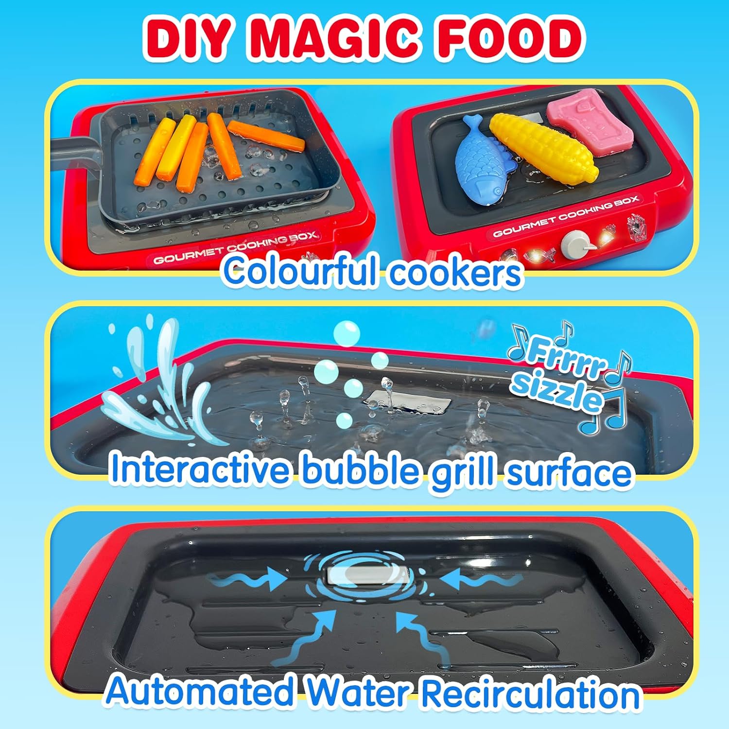 It is the first step for your children into the world of cooking, where foods change color and bubbles rise when "cooking", so your child feels like a real chef!