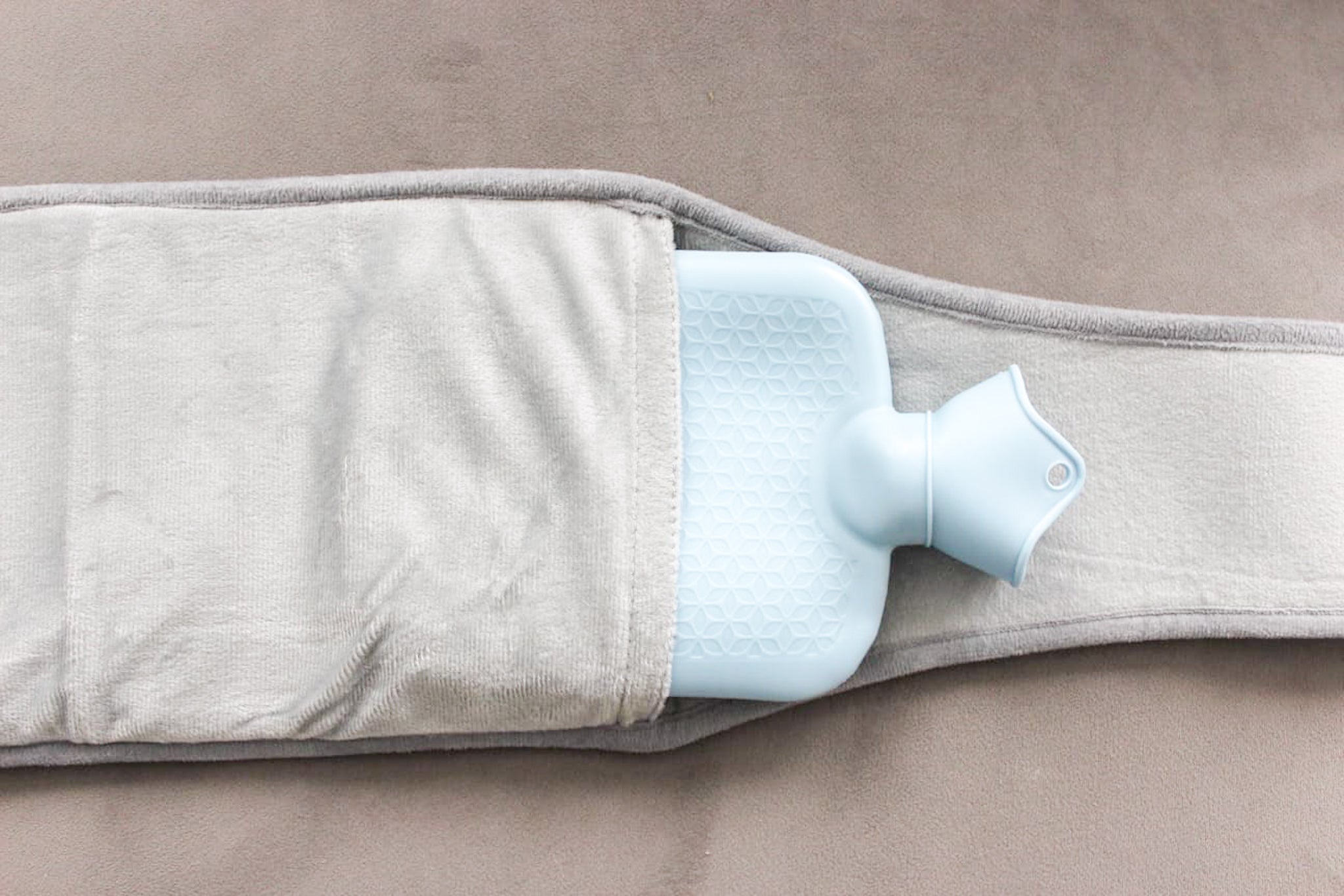 The surrounding belt is perfect for placing the hot water bottle on areas that need relief: