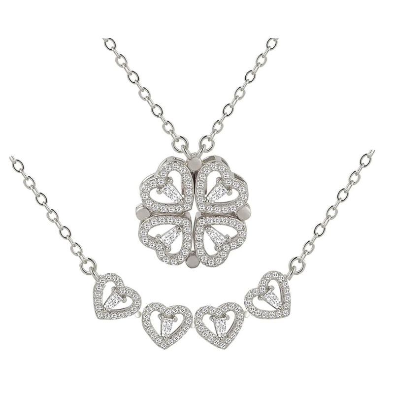 The Maxine™ - 4 Hearts Clover Necklace embodies the essence of love and bliss. This exquisitely designed necklace is not just an accessory but also a symbol of affection, perfect as an expression of your love to special people. With a charming clover design and four heart-shaped elements, this necklace is the ideal gift for unforgettable moments.