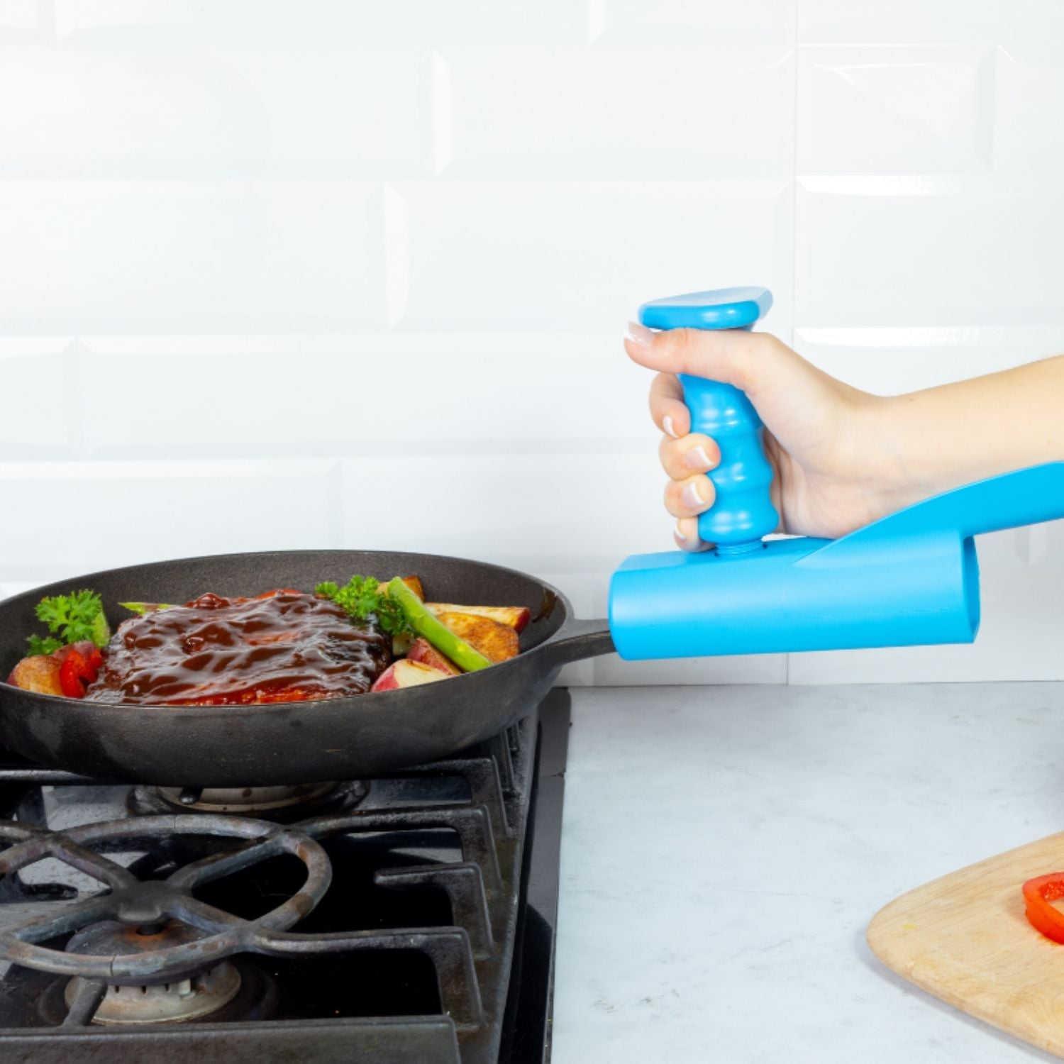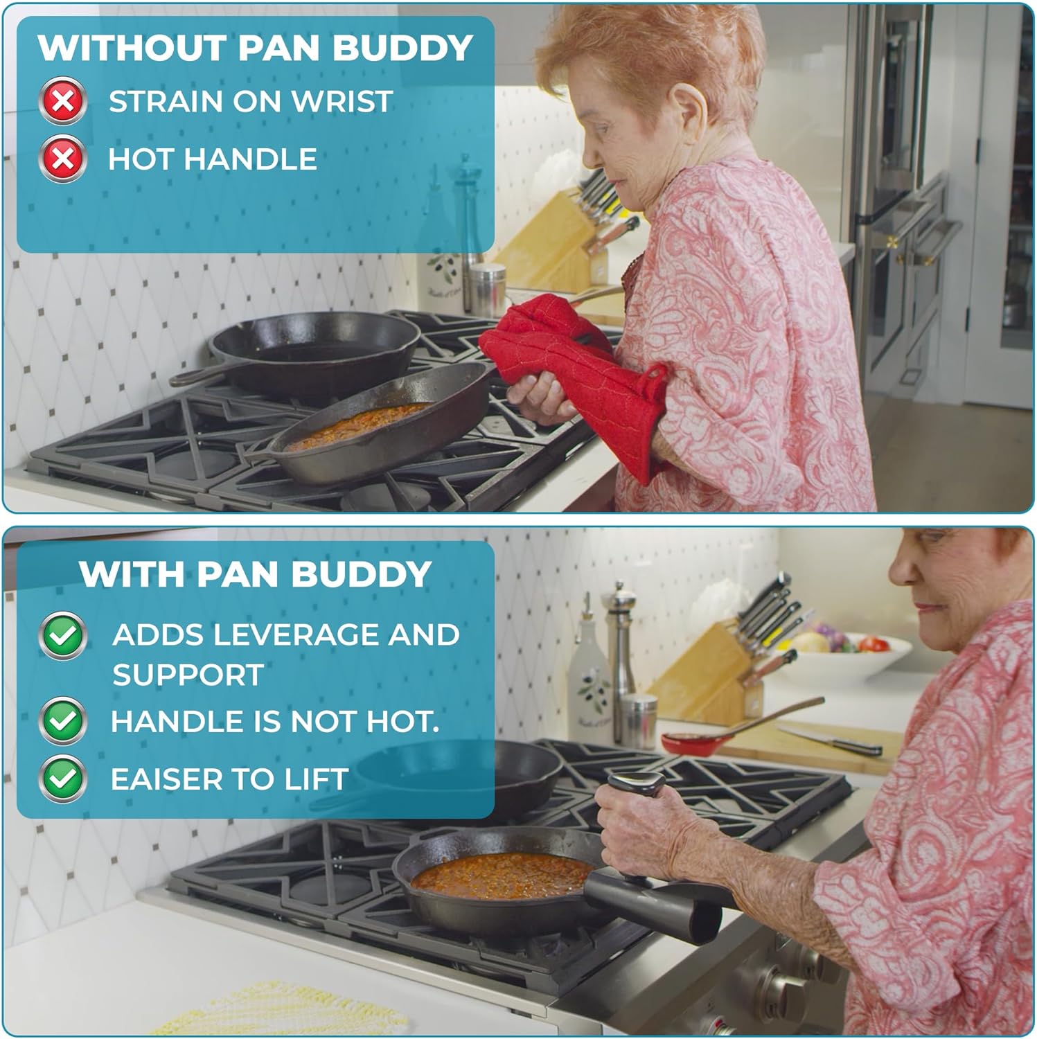 The PanBuddy is ideal for people with arthritis or carpal tunnel syndrome. Or for people who sometimes accidentally reach for hot cast iron pans.