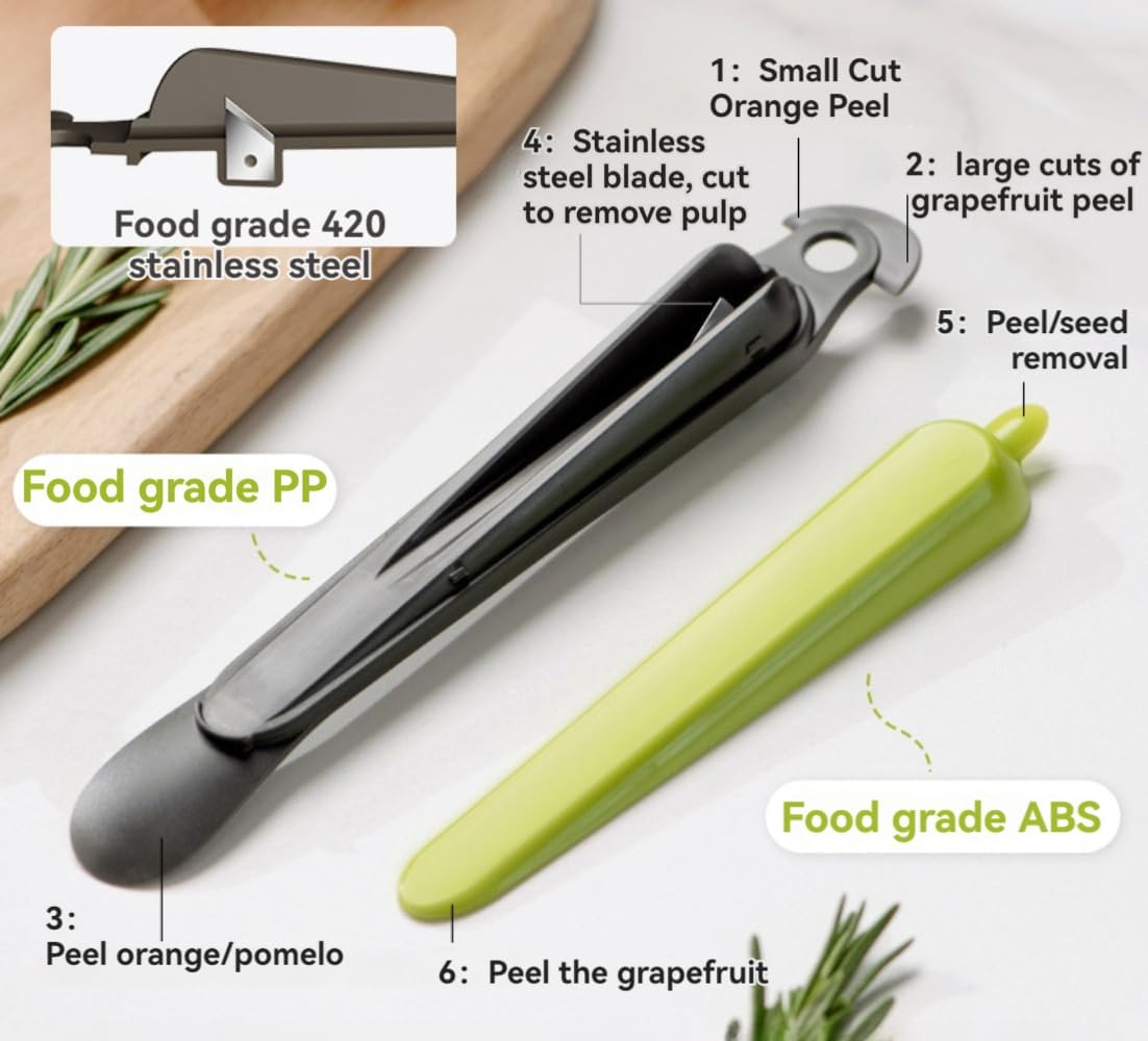 Introducing our citrus peeler - the ultimate tool for quick and convenient orange peeling. Say goodbye to dirty hands, nail accidents, and splashing juice, and look forward to an effortless peeling experience that preserves the integrity of your favorite fruits. Plus, it is a versatile tool for opening jelly jars, delivery boxes, and much more.
