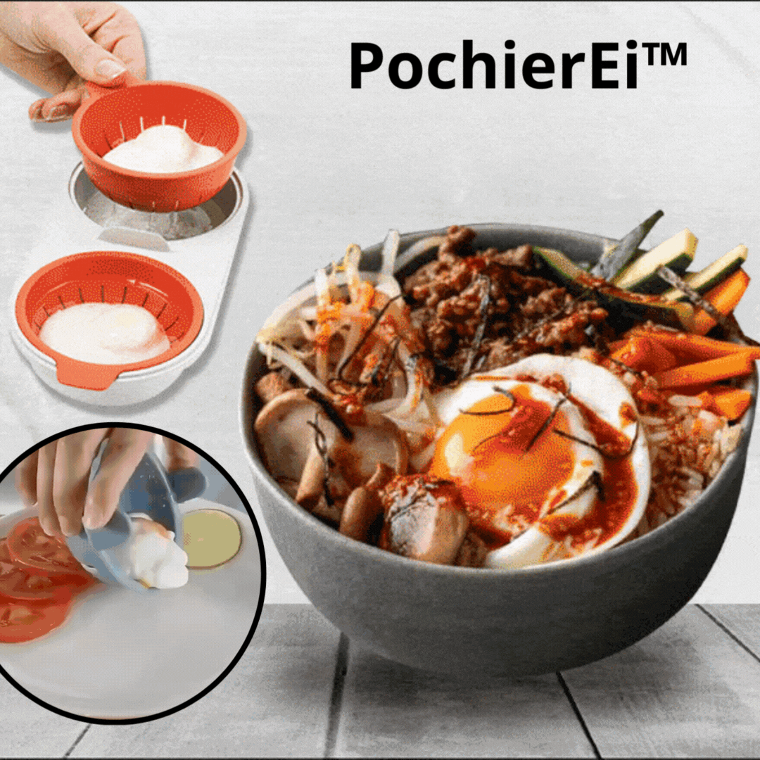 Tired of fried eggs and want something different? Then PochierEi™ - Poached Egg is just right for you! Poach two eggs in no time, without effort and cooking experience! Since this preparation uses no oil, it is also much healthier than a fried egg.