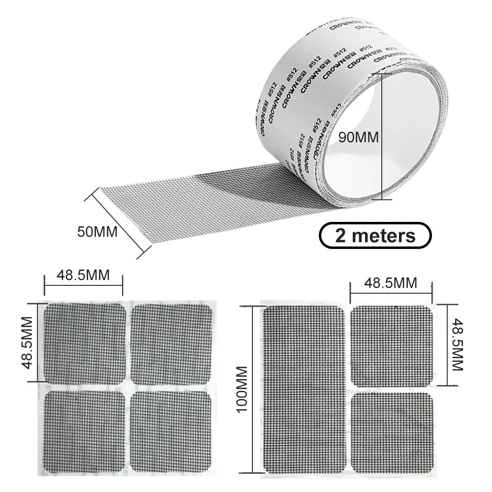 - Repairs holes and tears in windows, window doors, tent nets, pool covers, RV covers, etc.