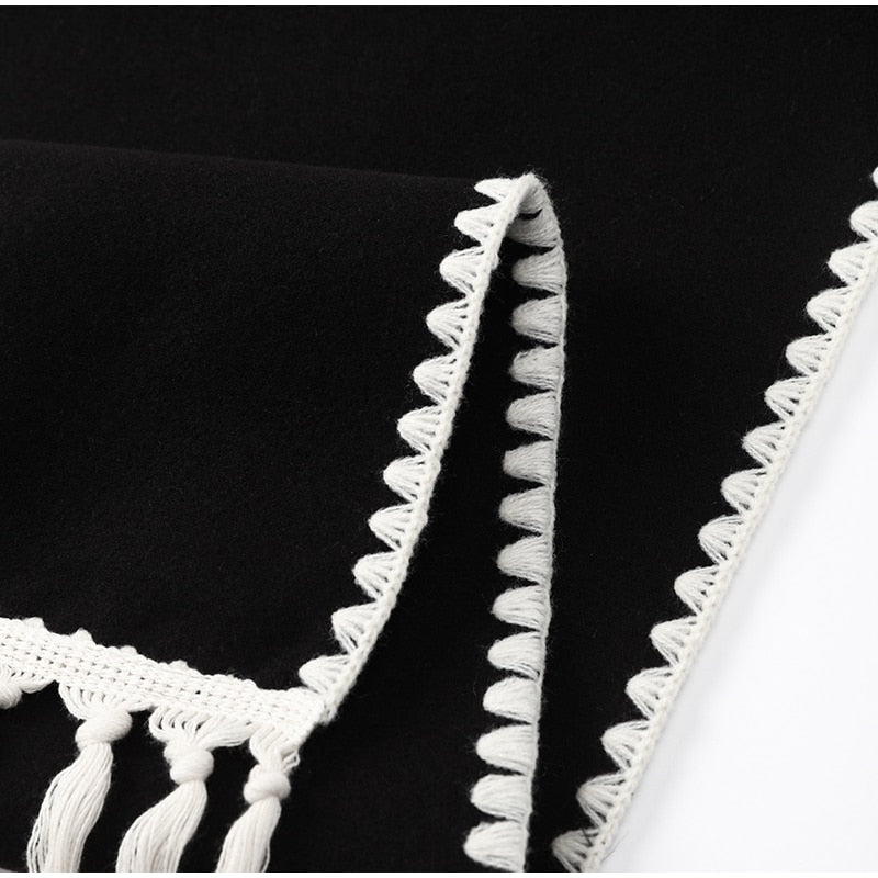 With fringing that adds flair and colorful stitching that demands attention, this scarf is the pièce de résistance that will take your winter wardrobe to the next level.