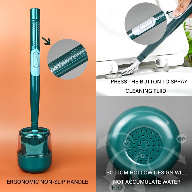 Our toilet brush comes with an automatic holder that opens when you remove the brush and closes when you put it back in. This prevents the brush from dripping into the holder or dirt from getting on the surface.