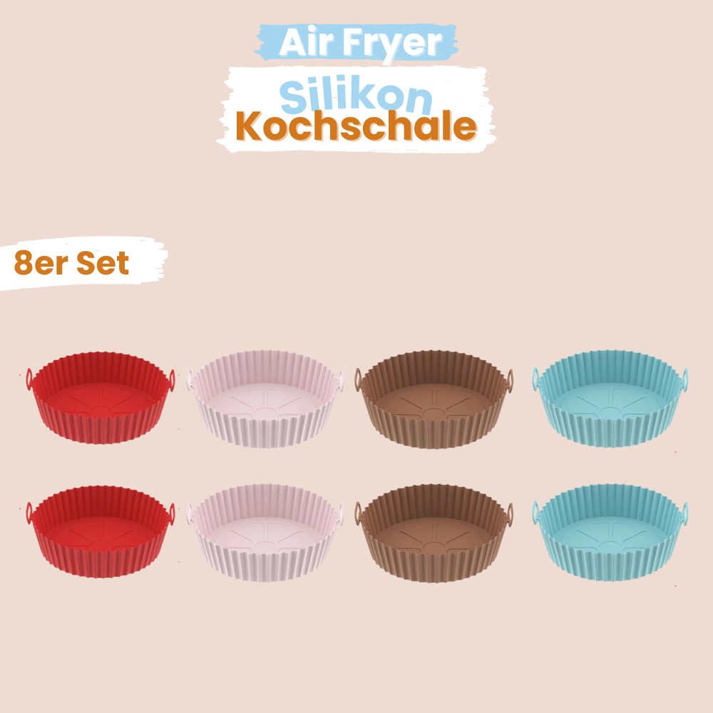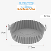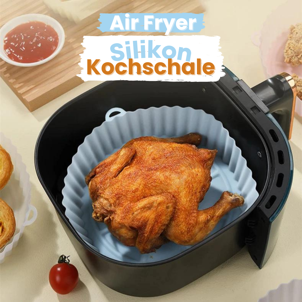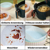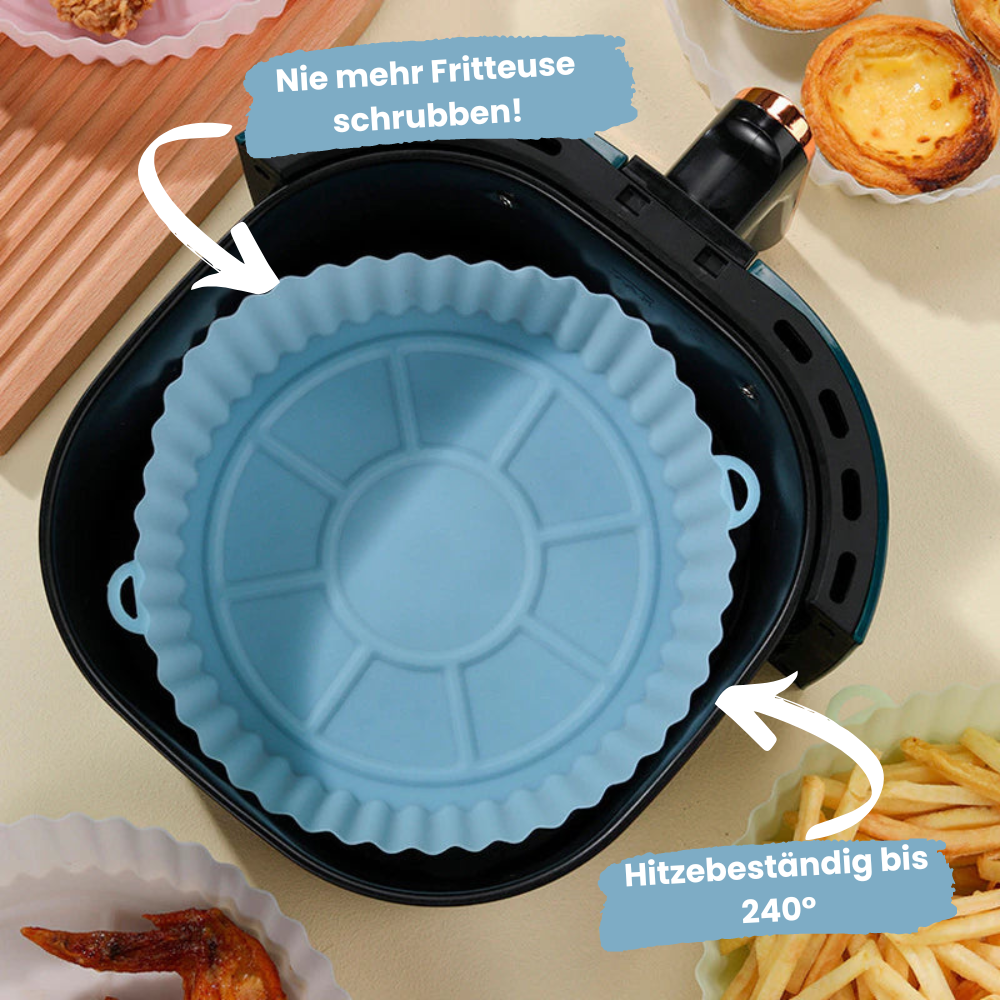 SilPlate™ is a must-have for every air fryer owner! It is a plate made of high-quality silicone, which is heat-resistant, durable, and robust. You can place it as a plate for your food in the basket of the fryer. It can be folded or flattened depending on the needs or size of your air fryer. Thanks to its universal size, you don't need to cut it.