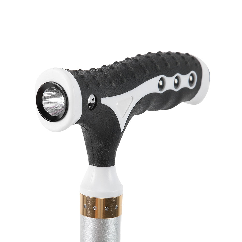 Foldable walking stick with seat provides durability while walking and comfort while sitting, polished and contoured to reduce hand cramps or muscle fatigue, and offer a comfortable grip.