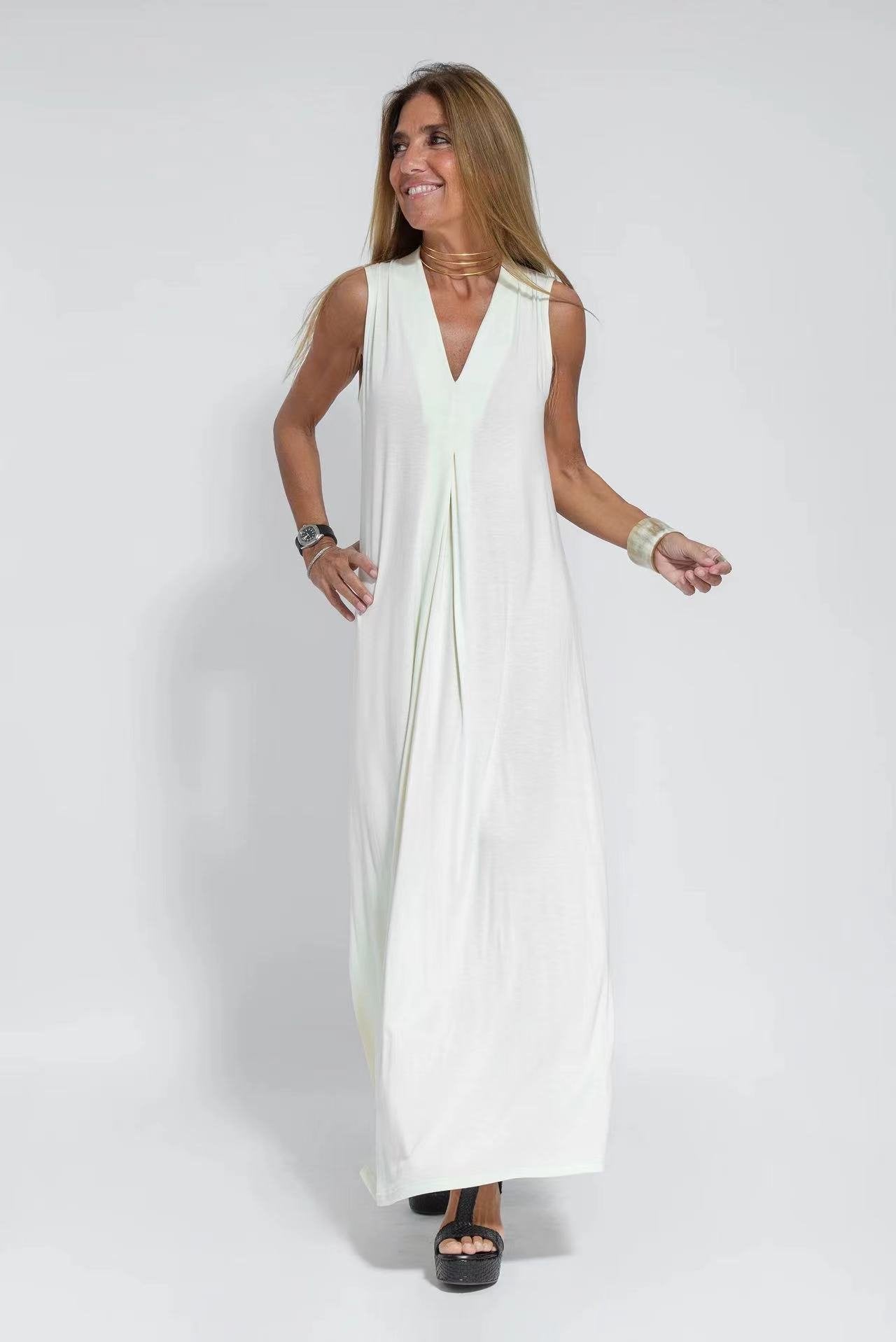 Effortlessly Radiate Elegance with SleekSiren Elegant Solid Color Sleeveless Maxi Dress!