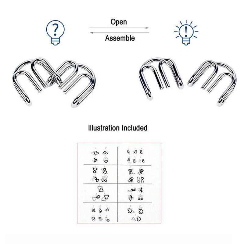Unlock your mental potential and enjoy a satisfying mental workout with our Smartrix 8-Piece Metal Brain Teaser Set.