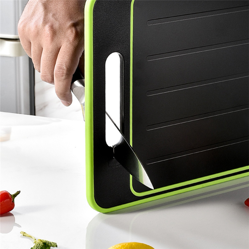 ✓ Knife Sharpening Function: This cutting board is equipped with an integrated knife sharpener to keep your knives sharp at all times. This ensures a more efficient and safer cooking experience.