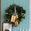 Experience the soothing ambiance of these tarnished cow bell wind chimes. Each set includes jute ropes tied to ring loops, making it easy to hang and fill your surroundings with the gentle, melodic sound of rustic charm.